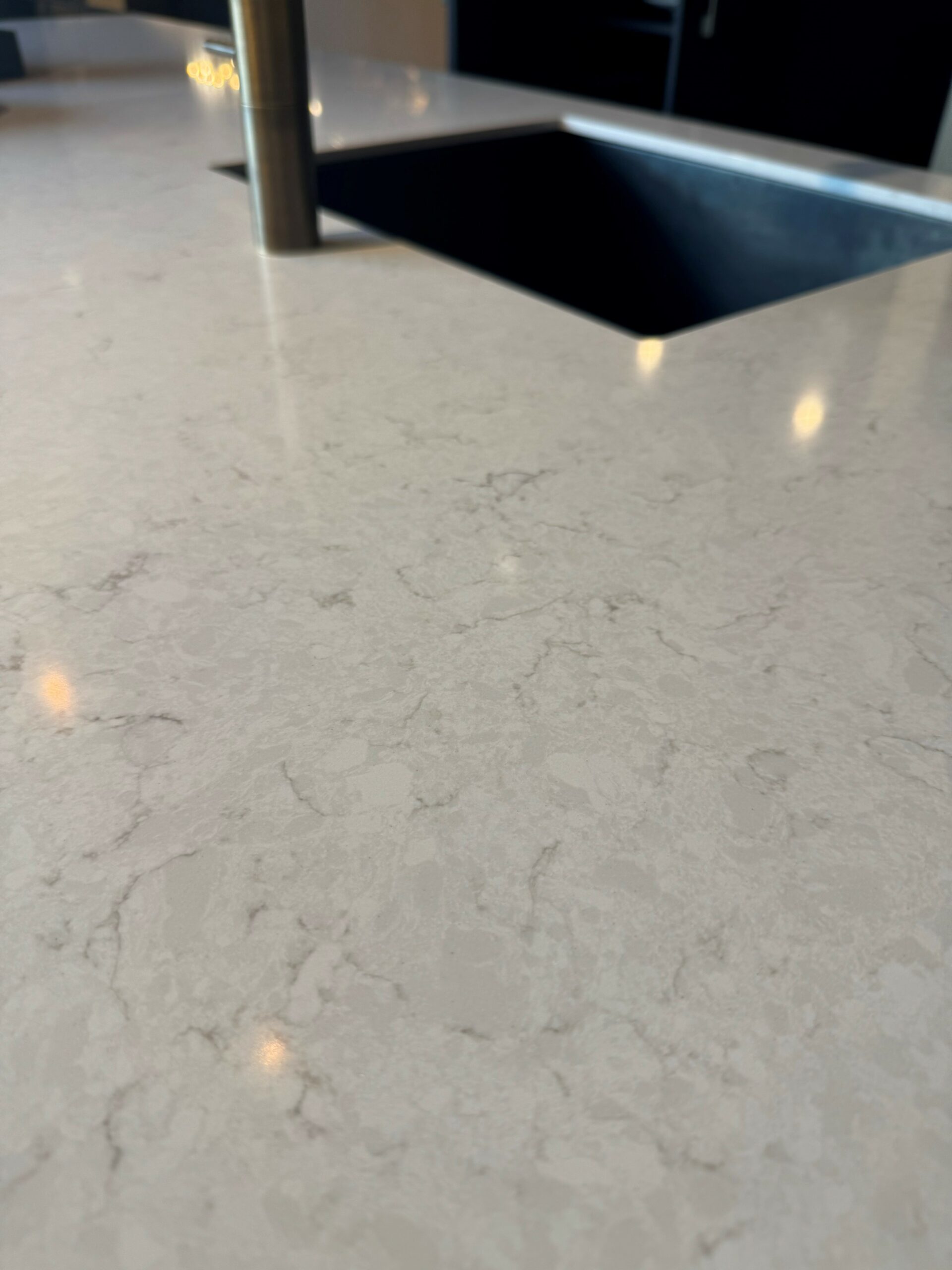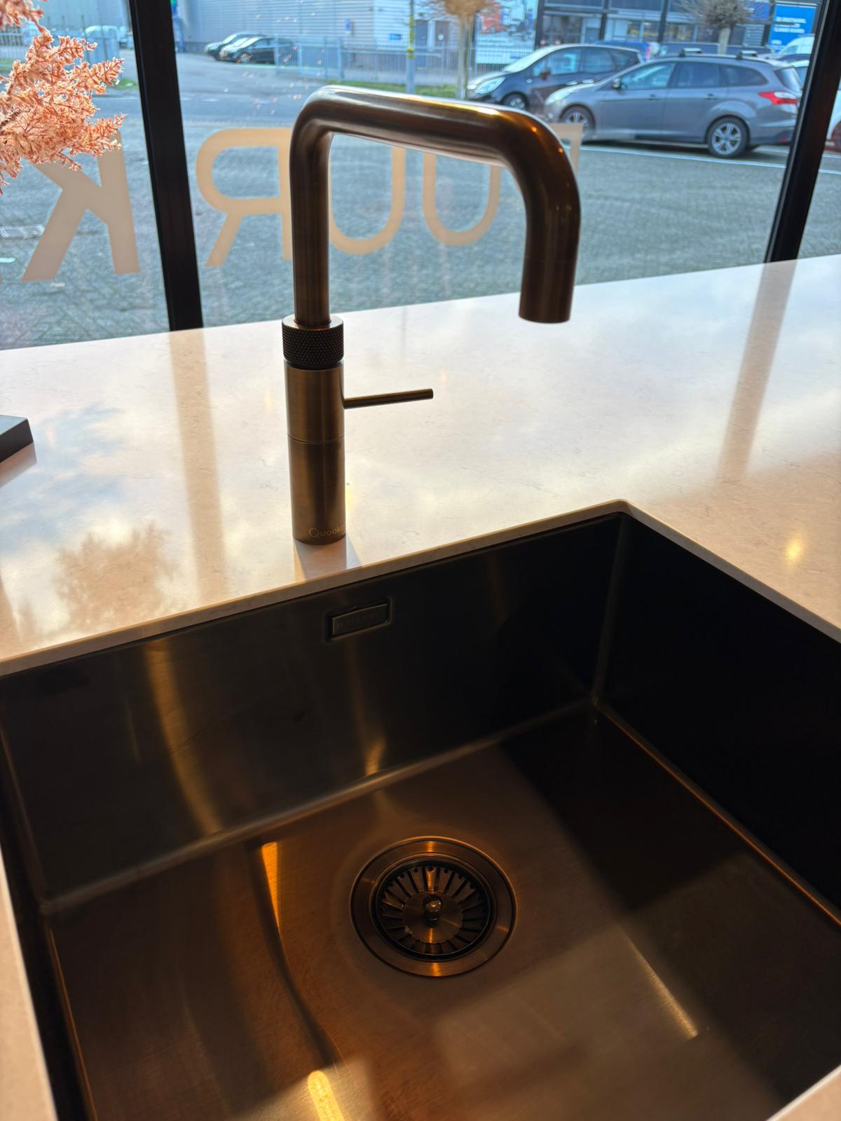 - Werkblad composiet 40 mm dik, incl. spoelbak in de kleur gun metal.